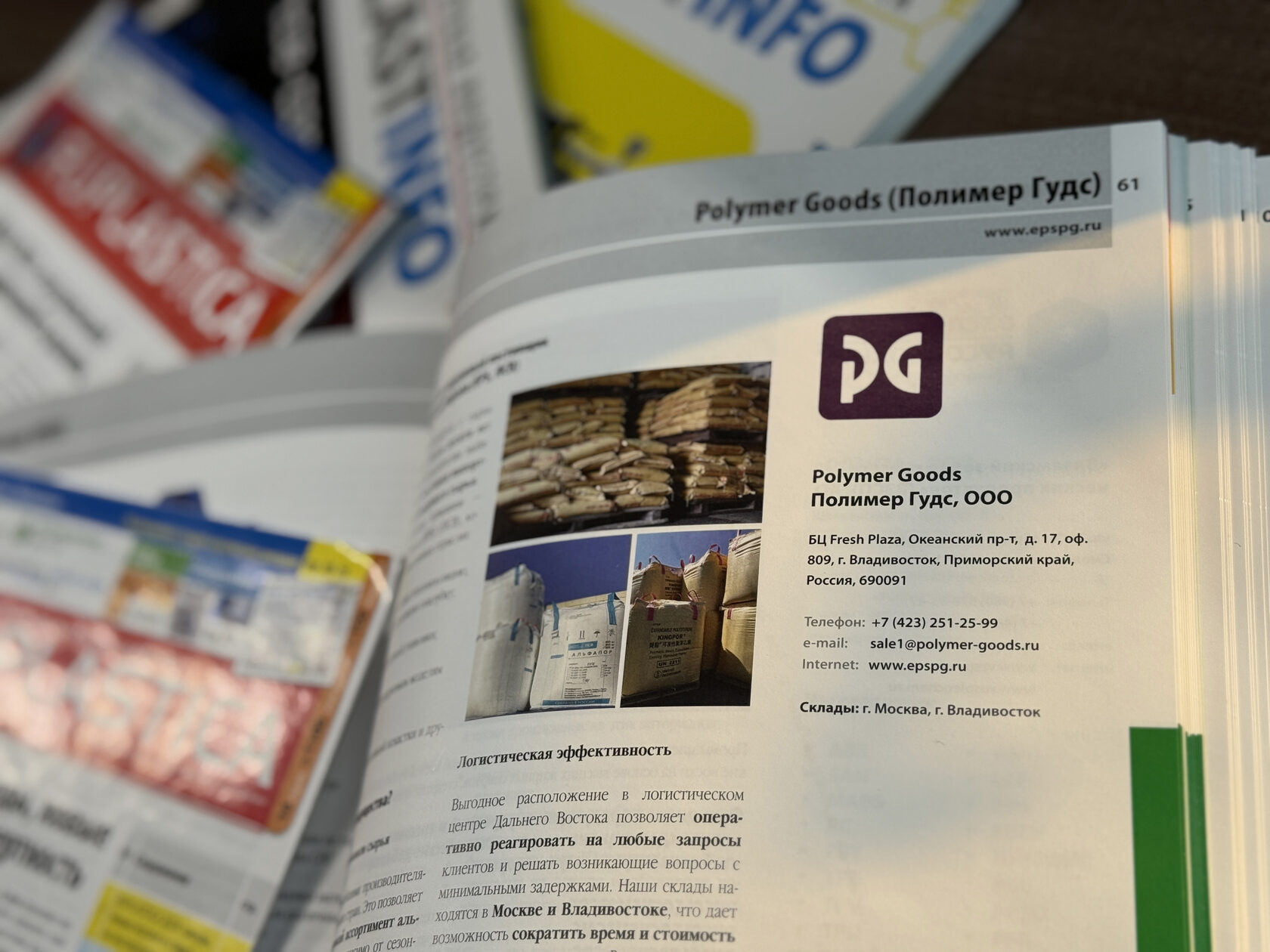 ООО «Полимер Гудс» с 2018 года ежегодно принимает участие в отраслевом каталоге «Полимерная индустрия» — профессиональном справочнике компаний полимерного рынка.