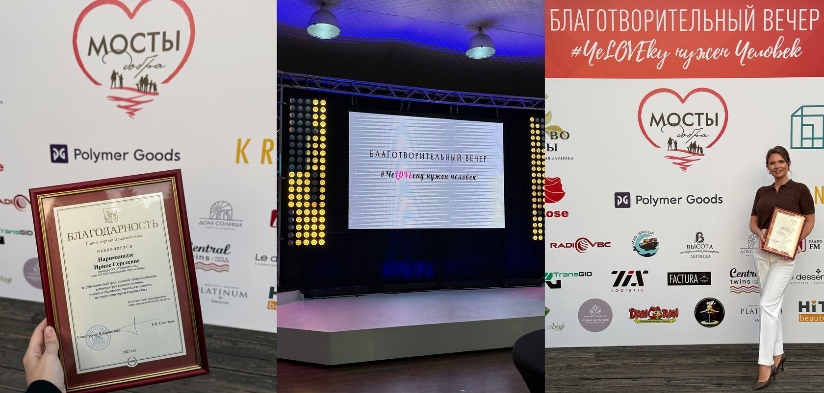 В сентябре 2025 года Полимер Гудс стали частью благотворительного вечера «чеLOVEку нужен человек», организованного фондом «Мосты добра». Этот вечер — пример того, как объединение усилий бизнеса и некоммерческих организаций помогает строить настоящие «мосты» — мосты к надежде, поддержке и лучшему будущему.